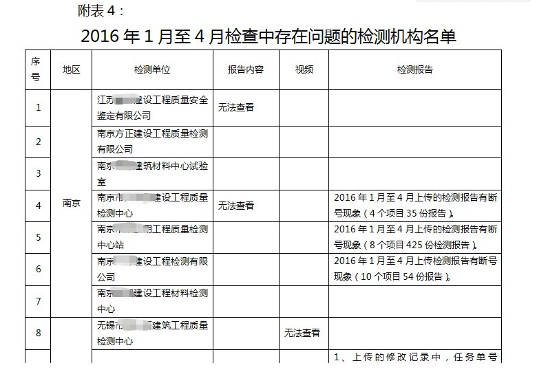 江蘇省建設(shè)工程質(zhì)量檢測遠(yuǎn)程監(jiān)控月報(bào)(2016年第1期)情況通告