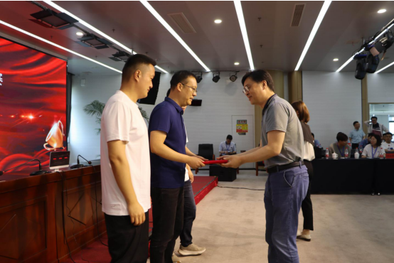 江北新區(qū)質(zhì)安站黨支部書(shū)記、站長(zhǎng)任強(qiáng)為我公司選手頒發(fā)榮譽(yù)證書(shū)