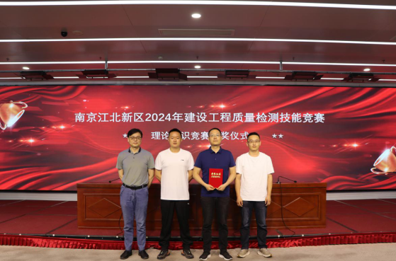 熱烈祝賀我單位在南京江北新區(qū)組織的建設(shè)工程質(zhì)量檢測(cè)技能競(jìng)賽中獲得理論知識(shí)競(jìng)賽團(tuán)體一等獎(jiǎng)!